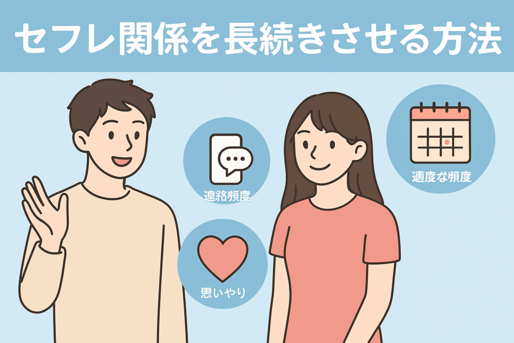 本記事では、セフレの定義や恋人・ワンナイトとの違いから、プロフィール作成、メッセージ術、会うまでの流れ、距離の縮め方、関係を長く続けるコツまで、初心者でも実践できる方法を体系的に解説しました。